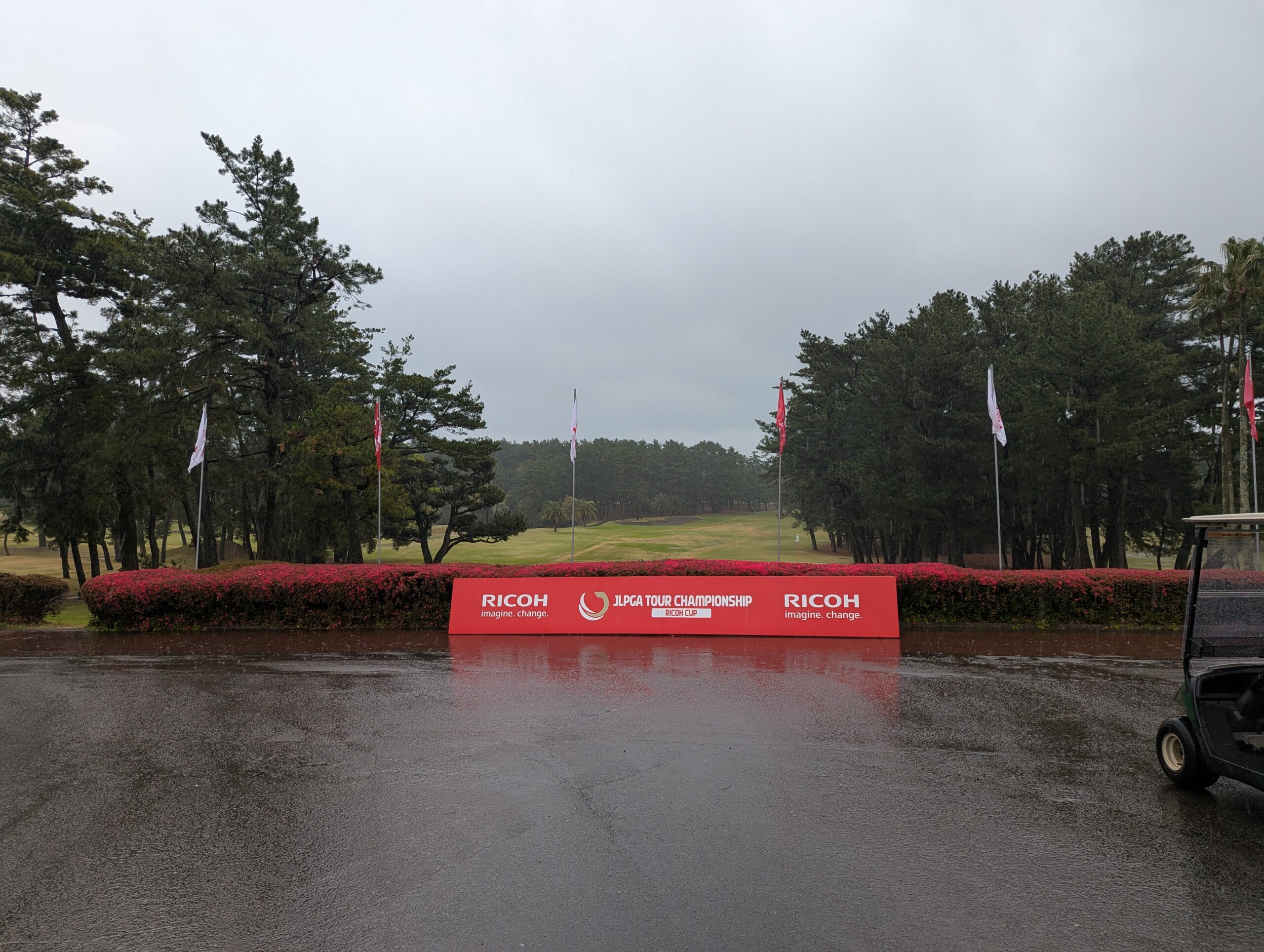 大雨の影響で、前半はパターの素振りすら省略してしまっていました。案の定、距離感に狂いが生じます。
